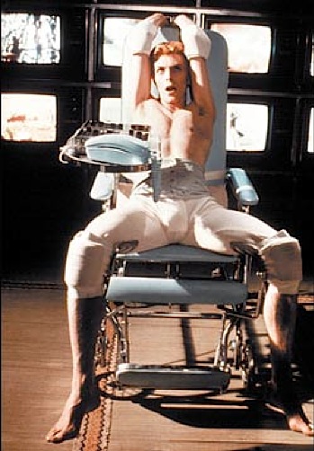 Bowie as The Man Who Fell to Earth, a 1976 film by Nicolas Roeg, based on the Walter Tevis novel about a humanoid alien who crash-lands on Earth. © Rex