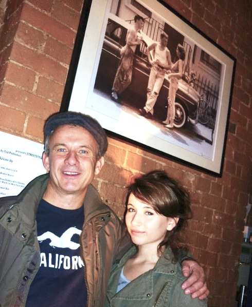 A lifetime later: Paul Sturridge with daughter Theola beneath the photo of him in his “hard times” guise. Photograph © by Paul Sturridge