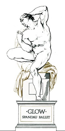 A few tasteful nudes from classical antiquity stood in for the band, resonating with the New Romantics’ lifeline back to Bowie’s “Heroes”. Graham says: “The iconic imagery for the album was based on Greek sculptor Myron’s The Discus Thrower. Glow was based on 18th-century etchings by the neoclassical sculptor John Flaxman. The Freeze image I sourced from a reference book on Egyptian icons — the chariot simply worked with the Journeys to Glory theme. The white spartan package was pure and reflected some of Gary’s lyrics and statements at the time, such as I am beautiful and clean.”