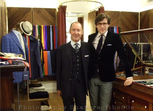 The new shop in Clifford Street: Linard joined the Drake’s design team in 1989 whereas sales assistant Augustin Vidor is currently an intern. Photographed © by Shapersofthe80s