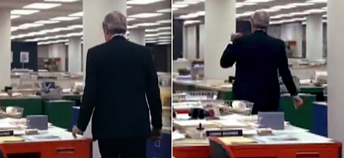 Fingertap. Clap hands. — Jason Robards as Ben Bradlee expressing his elation in All the President’s Men, after finally approving Woodward and Bernstein’s story of the century: “Run that baby!” [Exactly the same gesture that Charles Wintour would give at the London Evening Standard when elated]