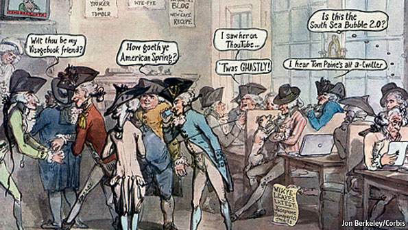 ➢ Back to the coffee house: the internet is taking the news industry back to the conversational culture of the era before mass media — The Economist July 7 (above)