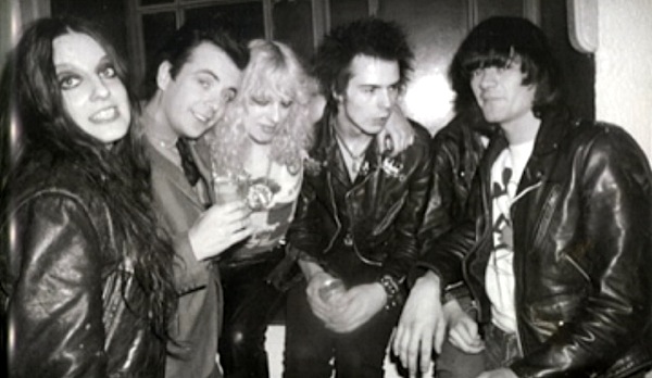 Linda Clark, Leee, Nancy Spungen, Sid Vicious, Dee Dee Ramone. (Photo by Danny Fields)