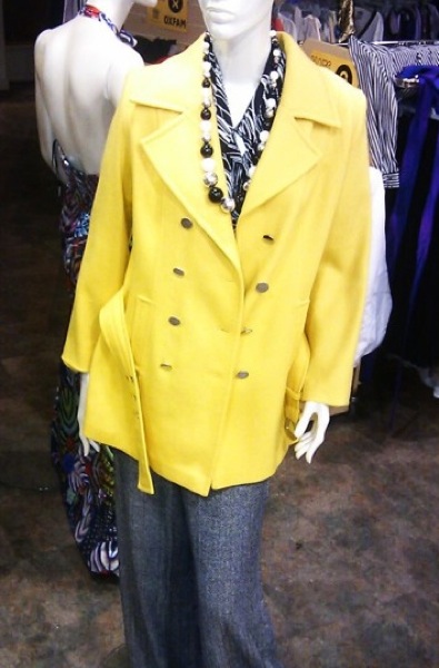 Yellow Marc Jacobs coat, grey Betty Jackson trousers