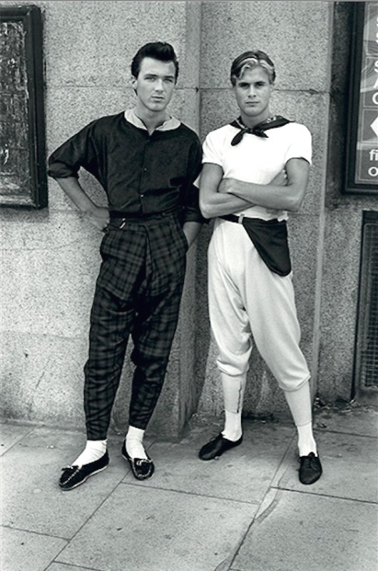 Two members of the pop group Spandau Ballet on the King’s Road in 1980, in strict New Romantic garb