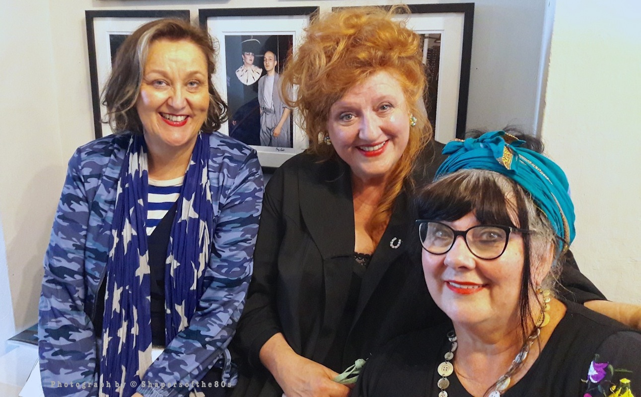 Former Blitz Kids: designer Fiona Dealey, entertainer Eve Ferret and artist’s model Sue Tilley. On the wall Fiona wears an ermine collar in 1980, pictured with Stephen Jones
