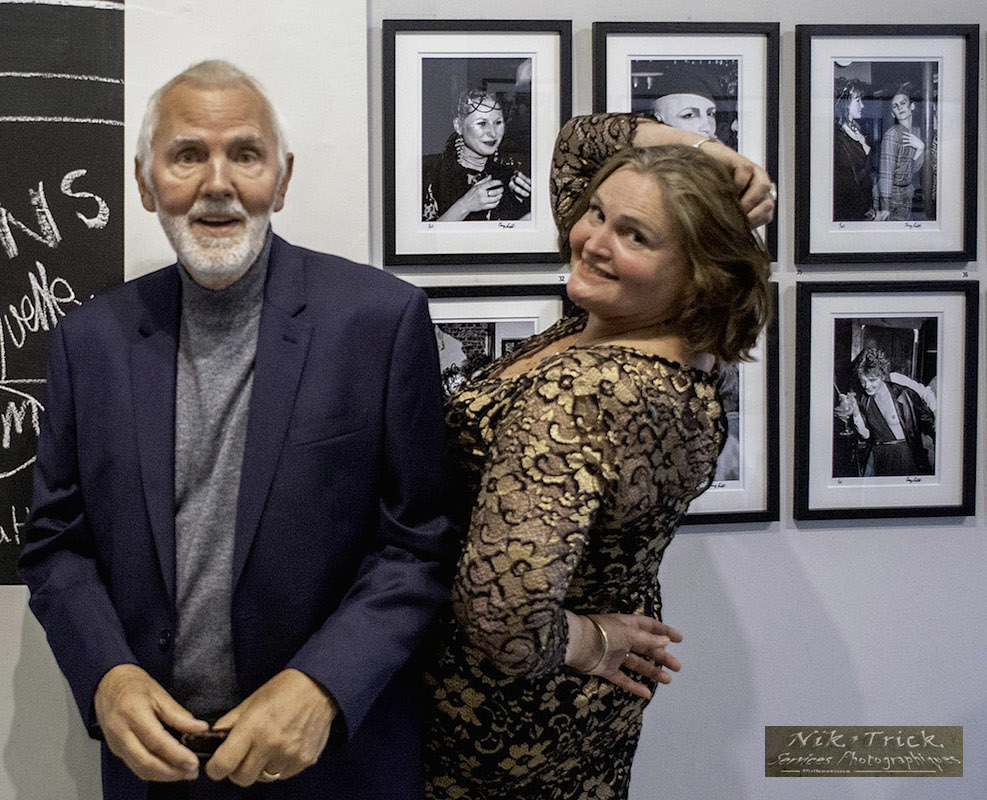 Our hostess the gallerist Lucy Bell unwinds after the guests have gone. On the wall far right, Clare Thom with George O’Dowd, and below boob-out Chessie again