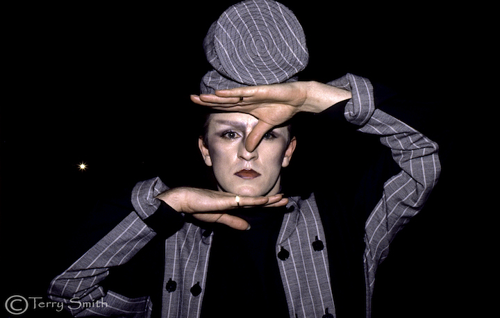 Our host Steve Strange dressed by Melissa Caplan: striking a “moderne” pose emblematic of Rusty Egan’s elektro-diskow music. The spirit of Guy de Bord informed Steve’s every action, whether he knew it or not
