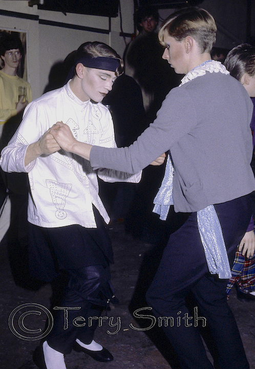 Middlesex Poly fashion student David Holah who would one day co-found BodyMap, here dancing with Robert, an early Blitz Kid later known as Marie