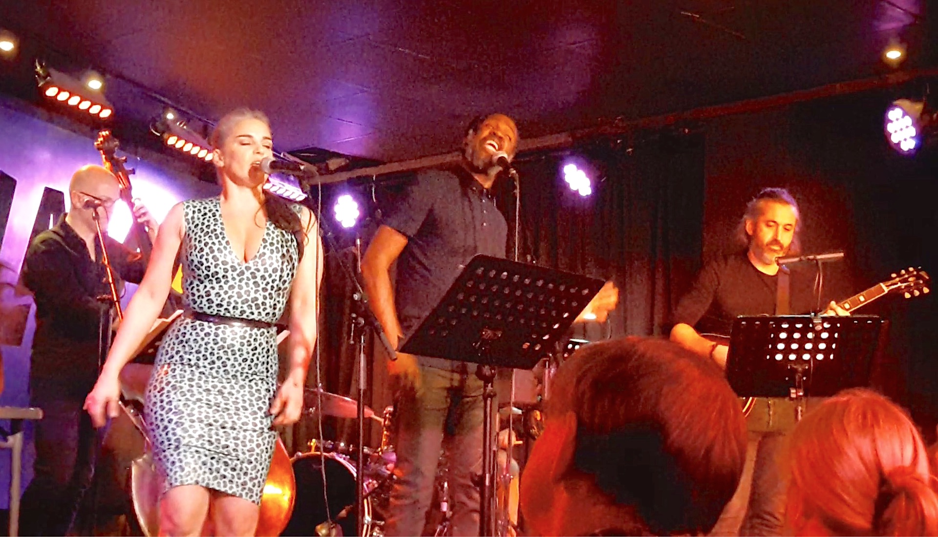 David McAlmont (centre) live at Hideaway: pictured with Simon Little on bass, vocalist Sam Obernik and Emlyn Francis on guitar
