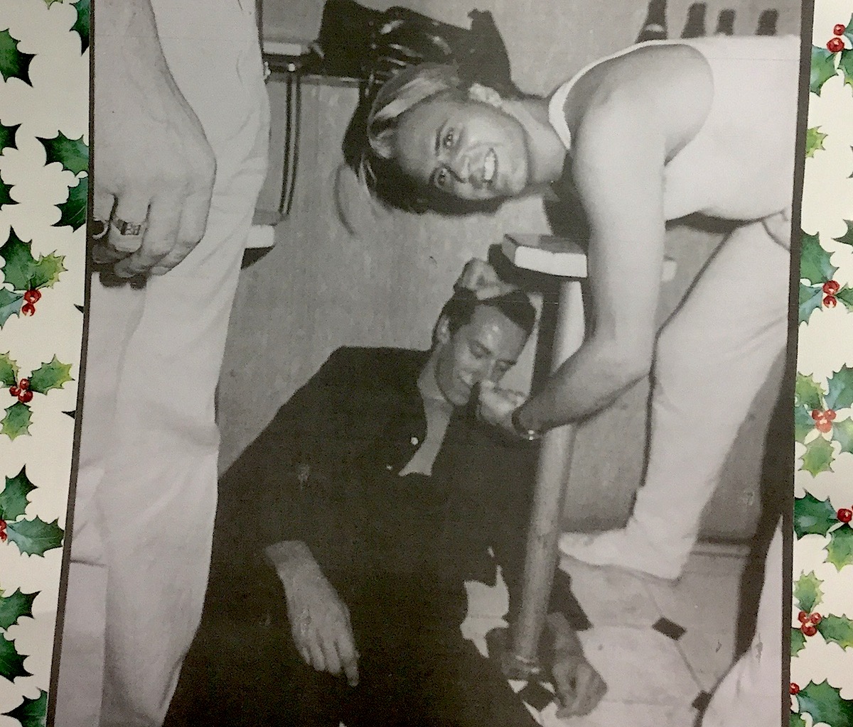Wakey-wakey! Spandau Ballet sax player Steve Norman discovers our hero Simper relaxing during a characteristic night out on the town during London’s Swinging 80s
