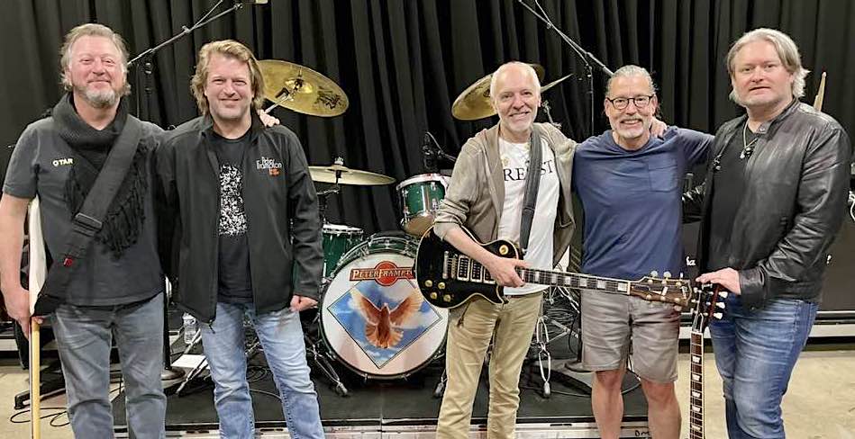 On the road for the finale, 2022: Steve Mackey, Rob Arthur, Frampton, Dan Wojciechowski and Adam Lester