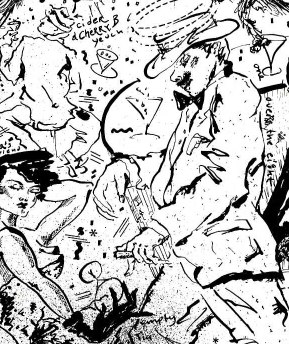 By the time we met up, there was this glow on the jukebox and body music at the bar. The dolls were loaded and so were the drinks. “Gimme a Pernod with creme de menthe,” ordered Velma. I winced. That kind of poison would have meant business to the Borgias. “Nobody takes it straight any more, not since Whisky Mac was run out of town,” she explained. “The new syndicate says Mix It – and they don’t mean no cissy cocktails.”