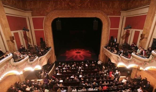 These days, theatres die easily. The hall where I saw my first Beckett is now a garage; others become movie houses, give way to apartments. Le Palace is a rescued theater; first of all because shows will be given here; then because, from the theatre it originally was (and several times over), everything has been preserved: stage, curtain, balcony, orchestra (transformed into a splendid dance floor, but from which you can see the show, standing or sitting on cushions), the great swathes of red velvet. Inveterate emotion: to climb a staircase and emerge into a huge space, crisscrossed with lights and shadows, suddenly to enter, like an initiate, the sacred space of representation (even and especially when, as here, the show takes place throughout the entire hall). Theatre: this Greek word comes from a verb that means “to see”. Le Palace is certainly a site dedicated to looking: you spend your time looking at the hall; and, when you come back from the dancing, you look some more.