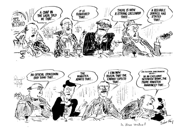 In El Vino veritas: leaks lampooned by Timothy Birdsall (courtesy of Spectator)