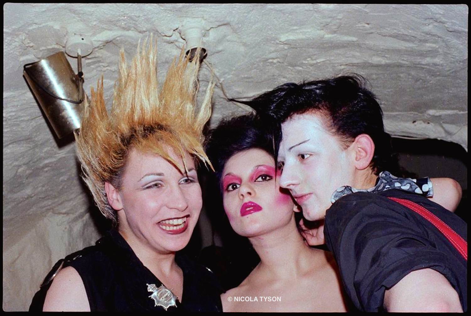 1978, the outsiders gather at Rusty Egan’s Heroes club-night at Billy’s in Soho: here, Peter ‘Marilyn’ Robinson, Julia Fodor, George O’Dowd. Photographed by Nicola Tyson