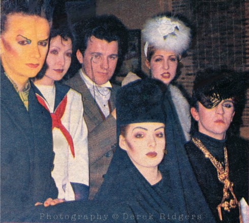 The first published group pic of key Blitz Kids, April 1980: George O’Dowd, Vivienne Lynn, Chris Sullivan, Kim Bowen, Pinkietessa, Steve Strange shot by Derek Ridgers for the Sunday Times Magazine