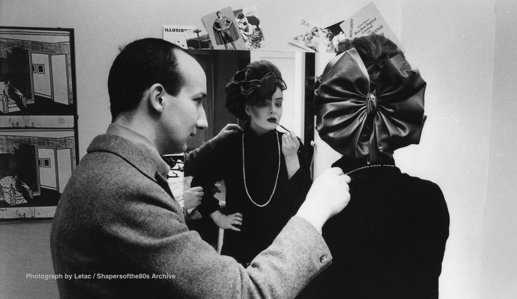 For Men’s Fashion Week, the On The Line column on 18 September zoomed in on Pose Age Man and the unisex tabard silhouettes of Melissa Caplan sported by two Blitz Kids John Maybury and Holly Warburton, Willy Brown’s printed workwear plus trousers by Simon Withers modelled by Spandau Ballet and the La Rocka prints of Lloyd Johnson – giving due credit to the hair stylists of the day, Ollie O’Donnell at Smile, James Cuts in Kensington Market and Antenna on Kensington Church Street. On 1 October the milliner Stephen Jones, who had established a business in the basement of the PX shop in Endell Street, flagship for New Romantic ready-to-wear, announced his wittily titled “First Collection” to meet orders coming in from the New Romantic pop groups Visage, Spandau Ballet and the world beyond.