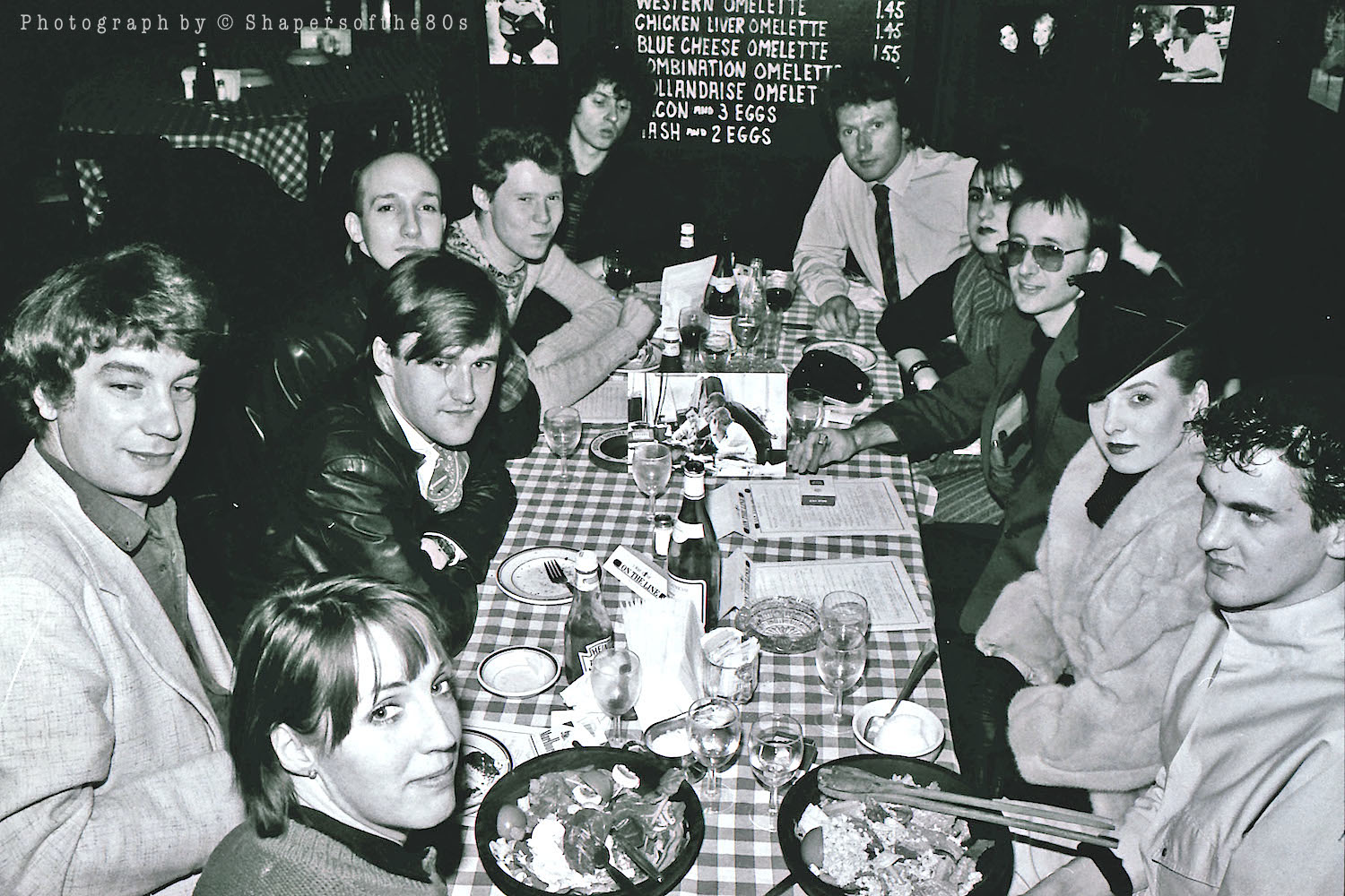 Shapers of the 80s share Christmas lunch 1980: clockwise, James Johnson and Standard colleague, Steve Dagger, Stephen Jones, Robert Elms, Rick Sky, David Johnson, Melissa Caplan, Nick Logan, Kim Bowen, Simon Withers
