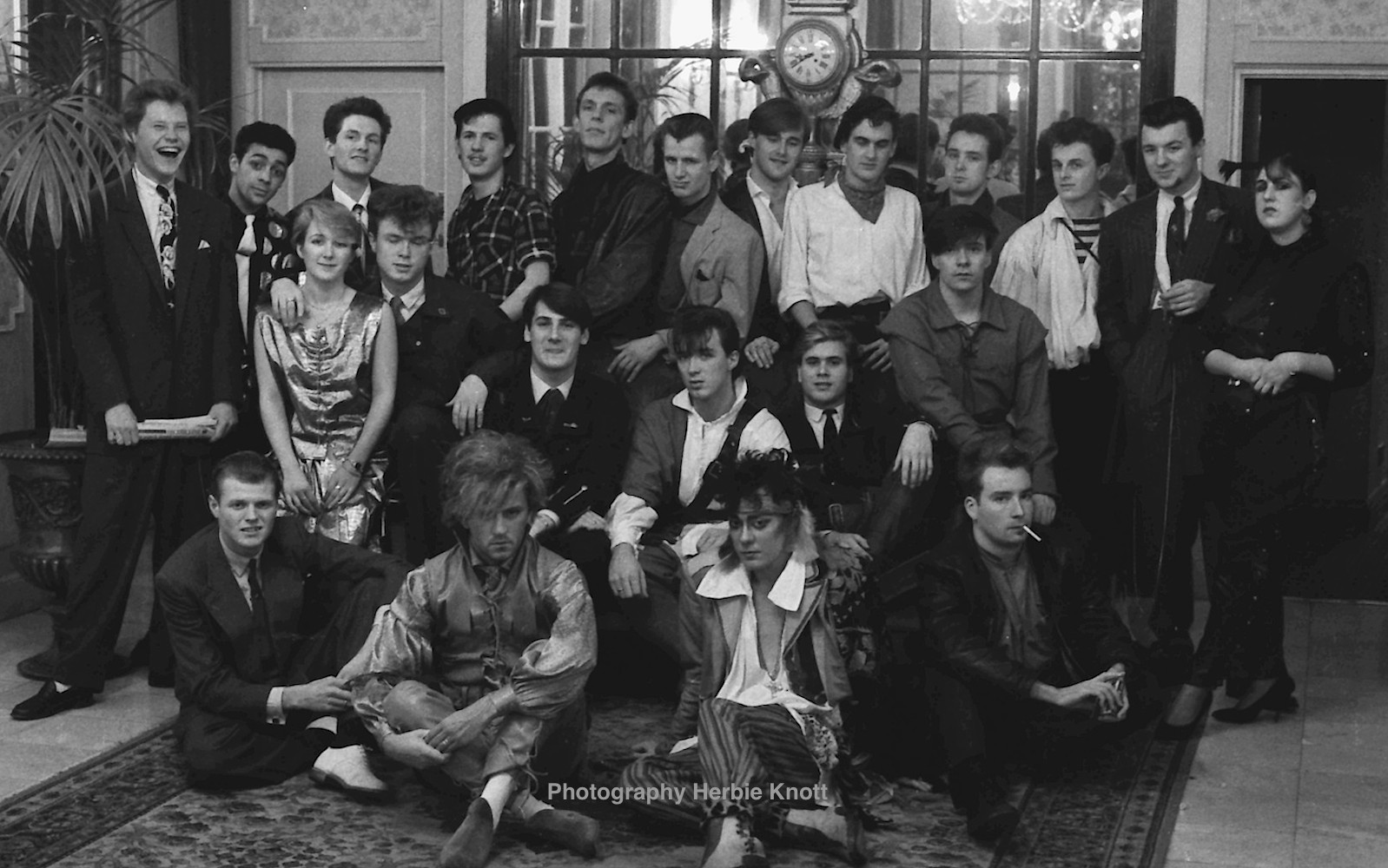 Year-ending December 1980: At the Waldorf Hotel, the team who had brought Spandau Ballet to fame, their average age 20 – seven musicians, six designers, three media and management, three club-hosts, two deejays, one crimper and 22 egos. Photographed for the Evening Standard by Herbie Knott