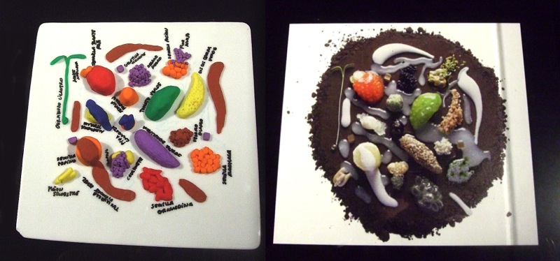 Before-and-after designs: left, coloured Plasticine model … right, real food on the plate by El Bulli chefs