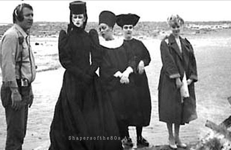 Enter the next witness, Ravensbourne graduate Judith Frankland, designer of Steve Strange’s Fade to Grey outfit and of two gowns worn in the Ashes video which were inspired, she says, by the nuns in The Sound of Music and coincidentally had been unveiled in her sensational degree collection “Romantic Monasticism” at the Café Royal during June. She says: “In a wonderful twist of fate, Steve was resplendent in my black wedding outfit that night and was chosen straight away. He was asked to select people he felt could be right. Bowie did see George O’Dowd but as I remember he was wearing his big leather jacket look that night, so he was out. I was invited as was Darla up to the table where David and Coco were sitting and offered a glass of champagne. Darla and I were both dressed in a similar ecclesiastic style, Darla in her own black outfit with white collar, and we were also asked to take part for what at that time was a decent sum of money for penniless, decadent students.