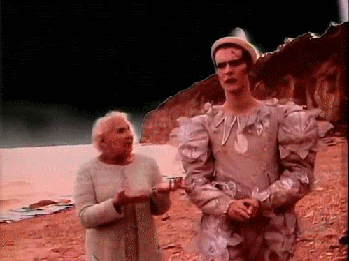 Ashes To Ashes video 1980: Darla-Jane Gilroy with Bowie between takes