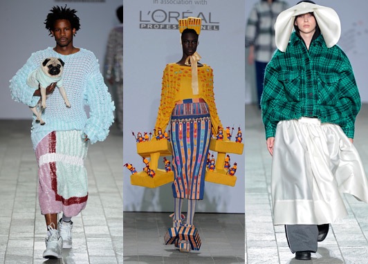 First BA fashion show at CSM’s new King’s Cross campus, 2012: Designs by Natalija Mencek, Ruoxin Jin and Erin Hawkes who won the L’Oréal Professionnel Award award