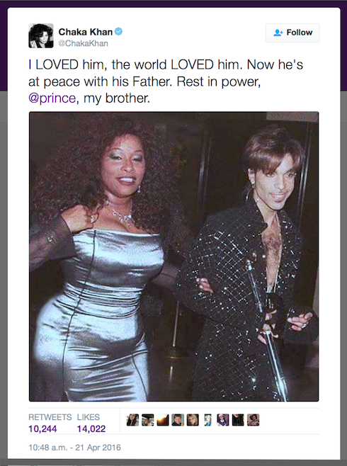 Nile Rodgers: “RIP our dearly beloved Prince. Tears and love on our tour bus. I’ll never forget my brother. We’ve had good times.”