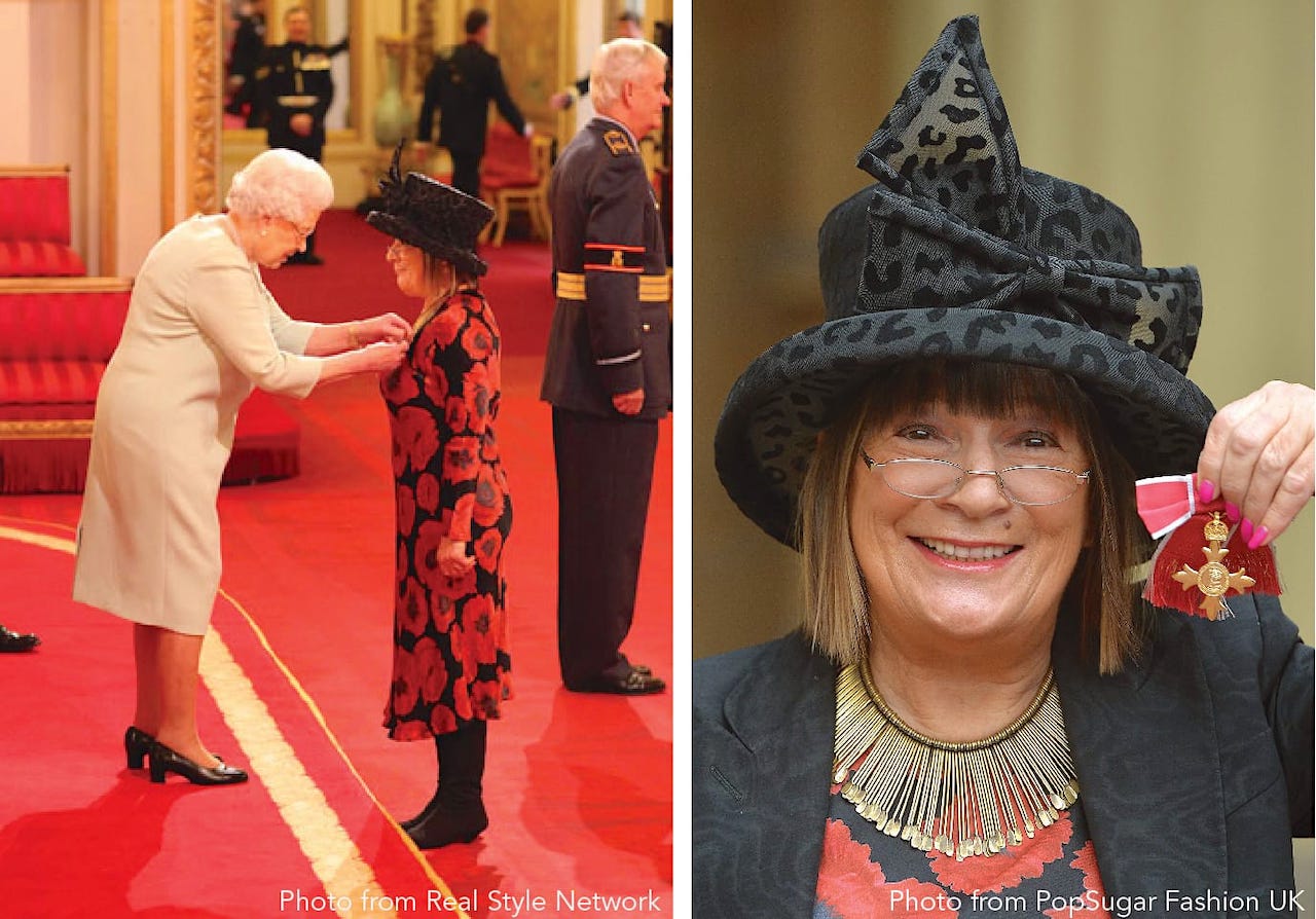 Fashion royalty: Hilary Alexander was made an Officer of the Order of the British Empire by the Queen in 2013… Hils sports a black silk dress with a jazzy poppy print to coordinate with the OBE ribbon