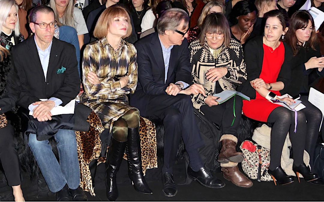 The fashion front row L-R: Jonathan Newhouse, Anna Wintour, Bill Nighy, Hilary Alexander, writer Lisa Armstrong and Laura Craig at the Mulberry AW 2012 show during London Fashion Week. (Photo © Dave M Benett). Click to enlarge.