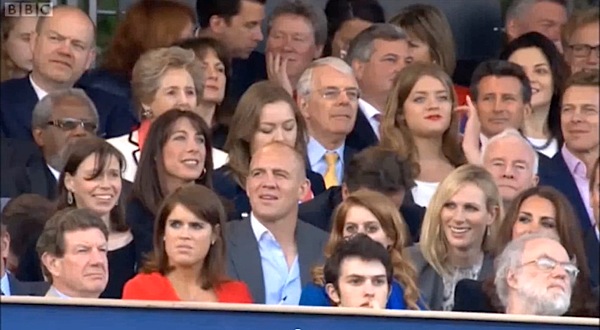 The fashion front row L-R: Jonathan Newhouse, Anna Wintour, Bill Nighy, Hilary Alexander, writer Lisa Armstrong and Laura Craig at the Mulberry AW 2012 show during London Fashion Week. (Photo © Dave M Benett). Click to enlarge.