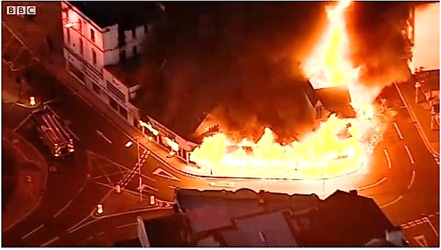 London riots, Saturday: Fire rages through the Carpet Right store in Tottenham, north London, after an arson attack