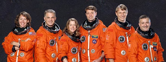 Atlantis shuttle crew, summer 2002: Sandra Magnus, David Wolf, Pamela Melroy, Jeff Ashby, Piers Sellers, and the Russian cosmonaut Fyodor Yurchikhin © Nasa