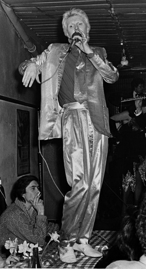 One-man cabaret: Biddie on-table at the Blitz wine bar in 1977