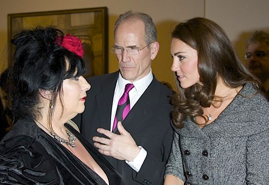 Crying out for speech bubbles: Sue Tilley meets Kate aka Duchess of Cambridge, with NPG director Sandy Nairne. (Photo by Jorge Herrera/WireImage)