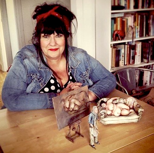 ❚ WHAT A BRILLIANT WAY to promote a good cause! Every fan of Sue Tilley will instantly recognise these tiny models on her table top in Bethnal Green. Here she is depicted asleep on the sofa in the studio of Lucian Freud and on the painter’s 1995 canvas titled Benefits Supervisor Sleeping (Sue’s occupation at that time) (supervising, not sleeping!). Not only did Ms Tilley become a face about the 80s known as Big Sue by vetting on the doors of London’s wildest club-nights, but soon after was made a notorious muse in the paintings of the German-born Freud who died in 2011. A grandson of Sigmund Freud, he fled Nazi Germany with his family in 1933 to be granted British citizenship, settle in London and become widely considered as the pre-eminent British artist of his age. In 2008 his painting of Sue set a world record auction price for a living artist when it sold for $33.6m.