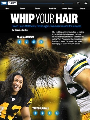 ❚ THE DAILY IS PARTNERING with the Associated Press for its content… [although] it’s been selling itself as a place to go for original content. As its website puts it: The Daily is “a tablet-native national news brand built from the ground up to publish original content exclusively for the iPad”. Apparently “original” here means “not aggregated.” Which is fair enough. But “original content” also implies “special content.” The kind of content you can’t get anywhere else.