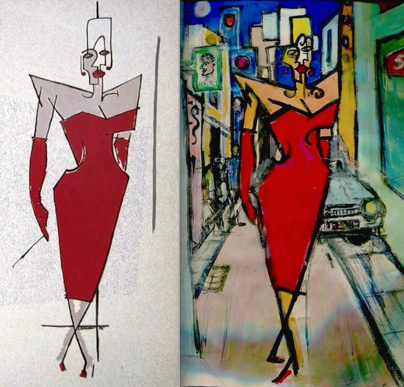 Fans will also recall that Sullivan as vocalist not only put the band together as a septet of crazy soul-jazz-Latin musicians on a 0-to-10 sliding scale of eccentricity – where all of them scored at least an 11 – that won them a £500k contract with Virgin. He also painted every one of their vinyl record sleeves in his own playful version of cubism. So here above we can now compare his restrained vamp Carioca from 1982 with her current rather more in-your-face madame for 2019. So what’s this all about, Chris?