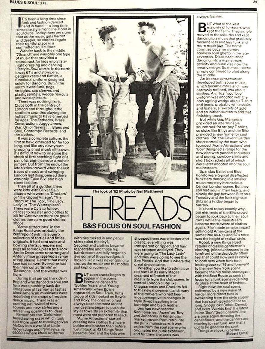 Click on the picture to enlarge it and read Robert Elms on the UK’s marriage of music and style in Blues & Soul in 1982